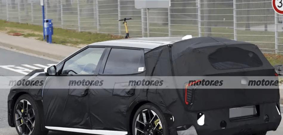 从谍照来看,起亚 EV4 GT 的外观充满强烈的运动气息。前脸采用封闭式格栅设计,搭配犀利的分体式大灯组,上部分为细长的 LED 日行灯,下部分则是矩阵式主灯,整体造型极具攻击性。车身侧面线条流畅且富有张力,低矮的车身姿态搭配溜背式车顶设计,不仅优化了空气动力学性能,更凸显出轿跑车型的动感特质。大尺寸熏黑轮毂搭配红色刹车卡钳,进一步强化了其性能属性,而宽体轮眉的设计则让车身看起来更加饱满有力。车尾部分,贯穿式尾灯是起亚家族的标志性元素,搭配底部扩散器和固定式尾翼,既提升了视觉冲击力,又能在高速行驶时提供足够的下压力。