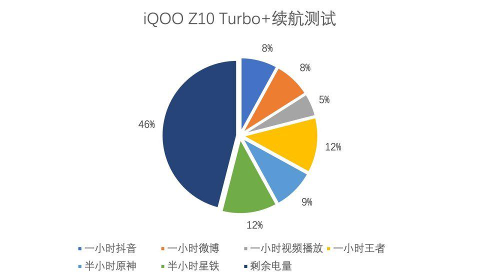 第二个亮点就是续航,iQOO Z10 Turbo+ 配备一块 8000mAh 超薄蓝海电池,采用旗舰同款的半固态三代硅材料,在拥有超大电池容量的同时还能保持更轻薄的机身。实际测试下,iQOO Z10 Turbo+ 一小时抖音浏览耗电 8%、一小时微博浏览耗电 8%、一小时 1080P 在线视频播放耗电 5%,可以说在日常使用下,iQOO Z10 Turbo+ 的续航表现还是非常不错的。
